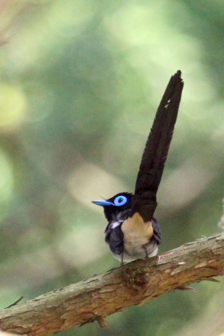 サンコウチョウの♂はしばらくじっとしていましたが、移動せずそこで羽繕いを始めました。