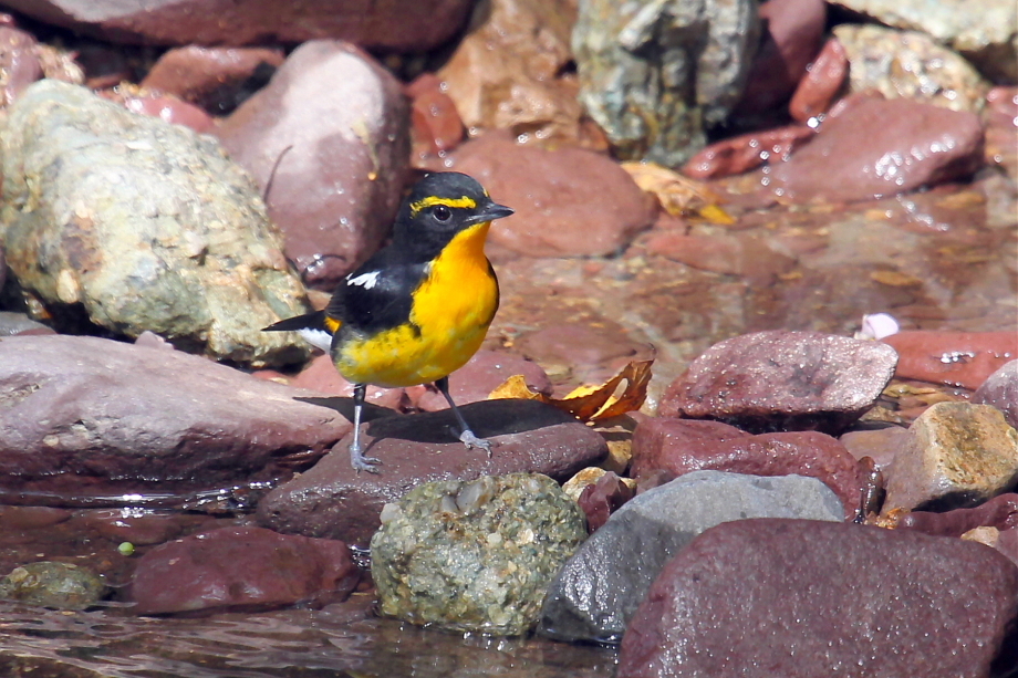 別のポイントへ行く途中で、車の中で昼食を食べるために寄り道をするとタイミングよくキビタキが水浴びにやって来ました。