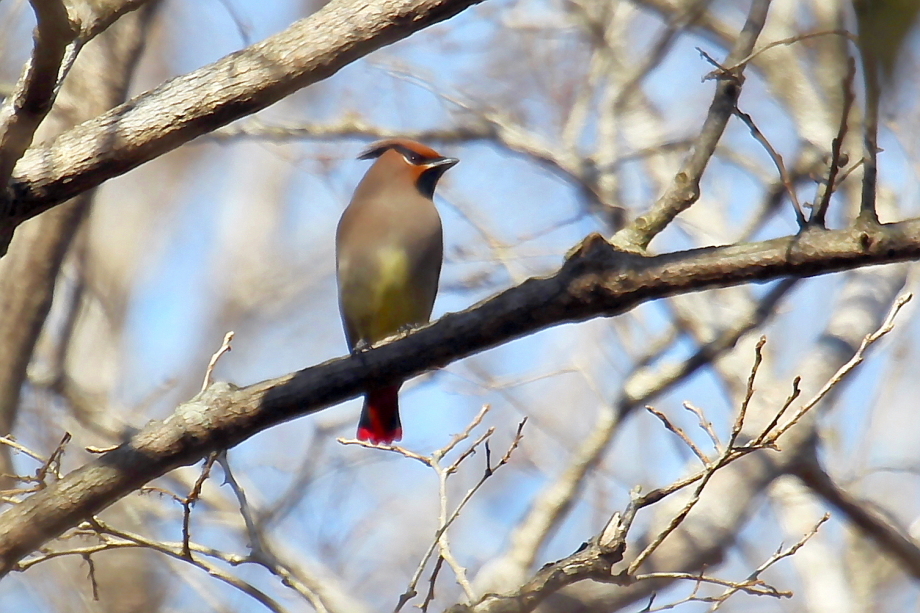 公園にヒレンジャクの群れが来ていると聞いたので昨日出掛けてきました。公園の駐車場から見える一番高い葉の無い木に50〜100羽位が休憩に来ては又何処かに飛んで行く状態を繰り返していました。