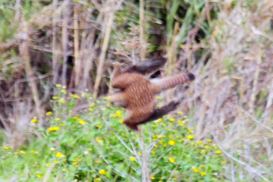 参加者がぞろぞろと近づいて行ったので、当然人間から逃げたと思いました。ところがどっこい、見つけた獲物に一直線に降下して行きました。飛び出しを見過ごしたのでカメラのピントは追いつきませんでした。