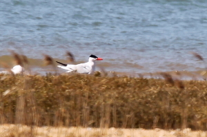 観察地点からオニアジサシまで距離は200m超、さらに今年一番の酷い黄砂と強風の為、三脚が揺れない様に一生懸命押えながら撮影してもこの程度でした。