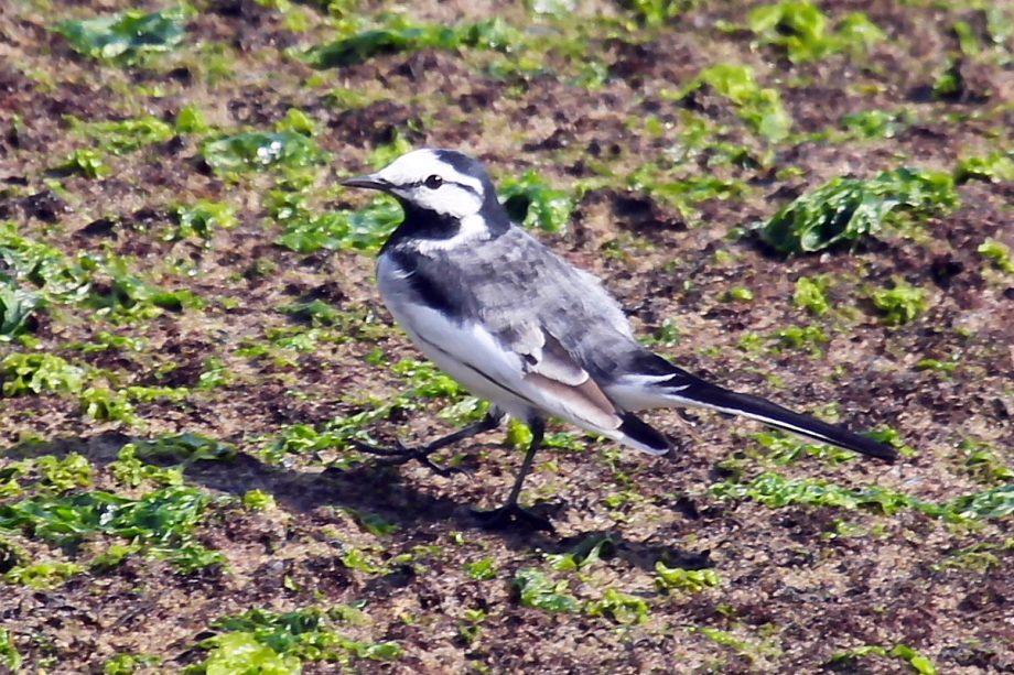 一昨日の鳥見の帰りに寄り道した川の河口で4羽のハクセキレイに出会いました。通常はハクセキレイにカメラを向ける事はほとんどないのですが、その河口には他に鳥がいなかったので魔が差した様に向けてしまいました。と云うのは4羽の内の1羽の顔が白っぽく感じたので、ひょっとしたらホオジロハクセキレイかも? と思ったからです。しかし、ファインダーを覗くと過眼線があったので、「あ〜、やっぱり並のハクセキレイか〜〜!」 と思って帰ろうとしました。