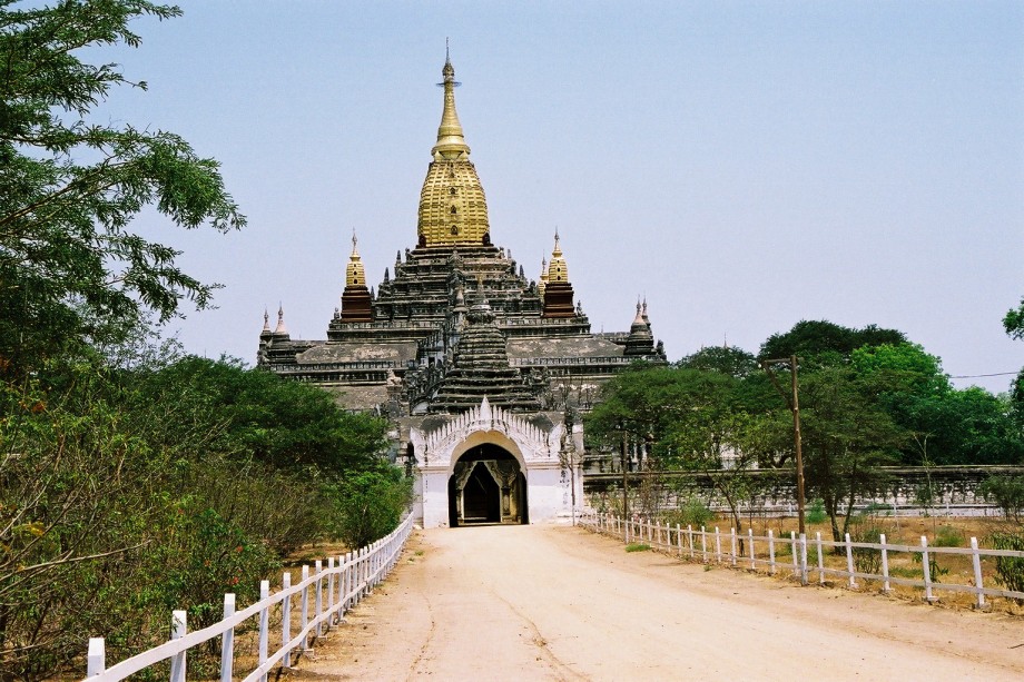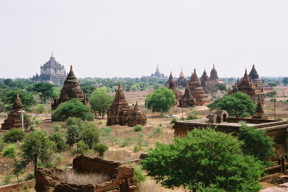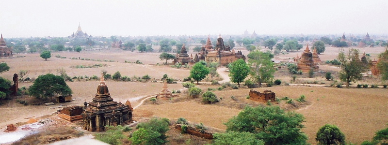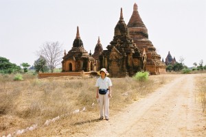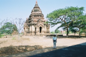 この後、私達はミンガラジーパゴダ、ティーローミロー寺院、アーナンダ寺院と回っていきます。これらは皆大きくて有名なパゴダや寺院で、現役だったんですが、その道すがら、バスの窓から目に入るのは、無数の廃墟と化した、大小さまざまのパゴダや寺院でした。ガイドブックに因ると、その数およそ2000と言うことです。